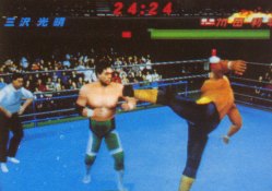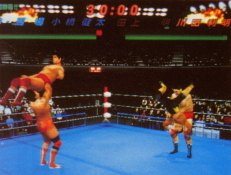 SegaHolic has put up some new images and info on the upcoming NAOMI sequel, All Japan Pro Wrestling 2 = Giant Gram. The original on the Saturn was considered by many to be the best playing wrestling title ever made. The game will defnitely be coming to the DC as the images below are taken from the DC version. The texture maps are incredibly life-like and there will also be a create-a-wrestler option this time around.
